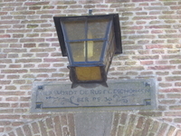 Opschrift boven de ingang van de kerk: