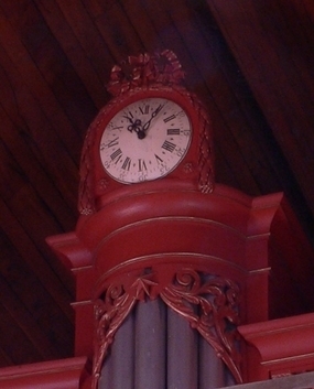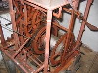 De windvleugel, die aan beide zijden buiten het uurwerk uitsteekt, trekt direct de aandacht van elke bezoeker. Een speels detail vormt de lichter die het slagwerk in gang zet. Deze is uitgevoerd als een kleine hand, een toevoeging van latere datum. Ook van latere datum is de aftakking naar een wijzerplaat boven op het orgel in de kerk. De hoekstijlen van het uurwerk zijn afgewerkt met gotische versieringen en basementen.